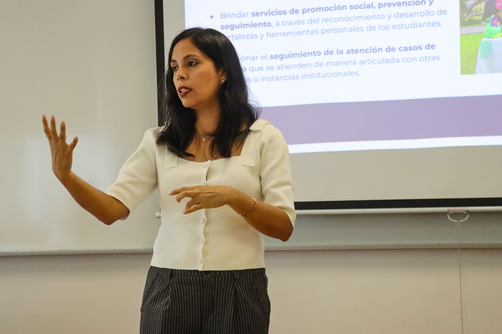 Durante las jornadas, los docentes participantes recibieron información sobre las áreas de Apoyo Social, Inclusión (PAIE), Servicio de Salud, Becas, Deportes, Empleabilidad, Bienestar Psicológico e Iniciativas Estudiantiles. Se expuso el propósito de cada servicio, el alcance y los procedimientos de atención, brindando así un panorama claro que permitirá a los docentes orientar o derivar correctamente a los estudiantes cuando estos soliciten o mencionen una necesidad específica.